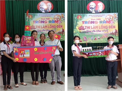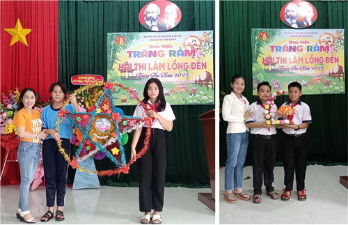 toàn trường “Vui hội trăng rằm” bằng hình thức thi làm lồng đèn giữa các khối lớp.